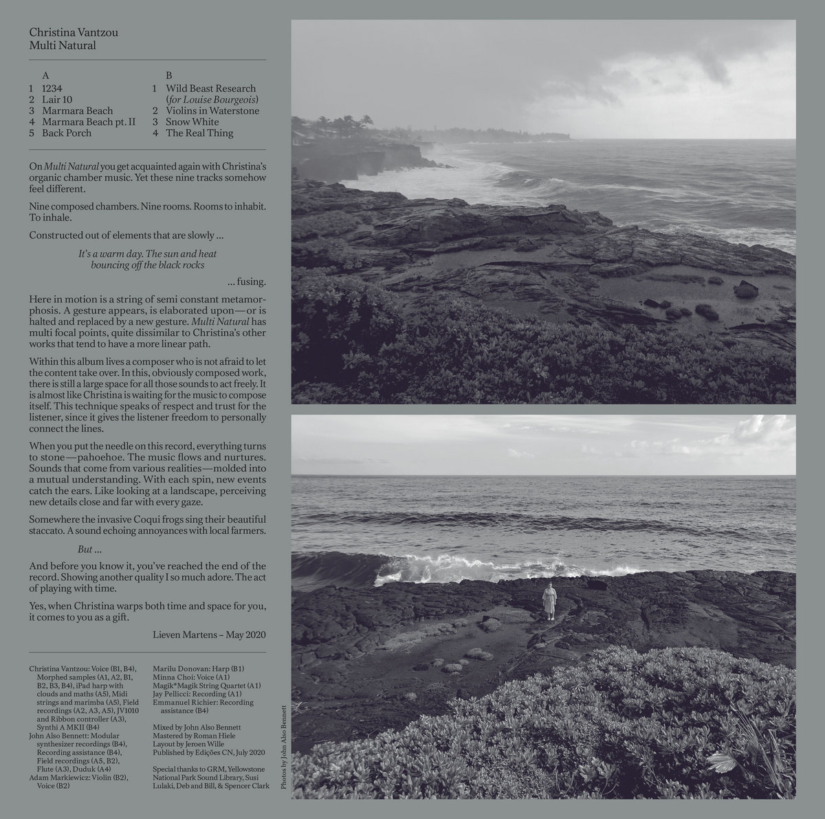 Multi Natural is a new example of Christina’s organic chamber music. We enter nine composed chambers. Nine rooms to inhabit, constructed out of elements that are slowly fusing. The album is a string of semi constant metamorphosis. A gesture appears, is elaborated upon—or is halted and replaced by a new gesture. Multi Natural has multi focal points, quite dissimilar to Christina’s other works that tend to have a more linear path.